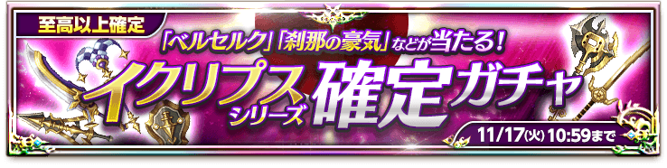 ※本お知らせ内の「究極 蝕刀イクリプス」の必殺スキルに表記の誤りがございましたので修正いたしました。