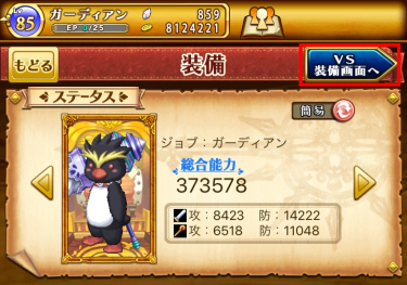 ※VS装備は「メニュー」>「装備」>「VS装備画面へ」からご確認いただけます。
