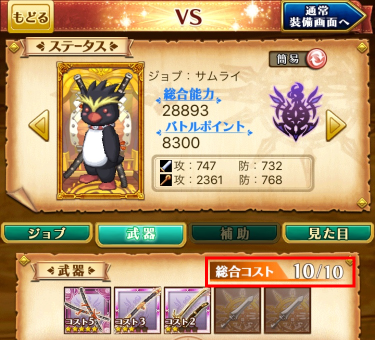対戦イベント用の装備コストは、アップデートにより事前の予告無く調整される場合があります。