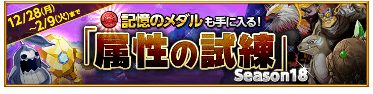 記憶のメダルも手に入る!「属性の試練season18」開催のお知らせ