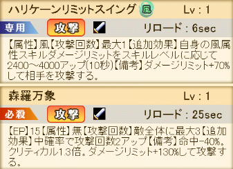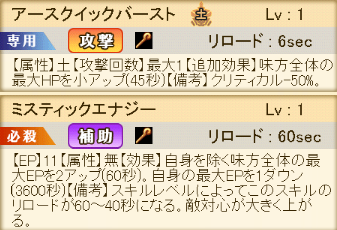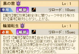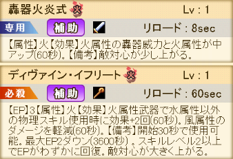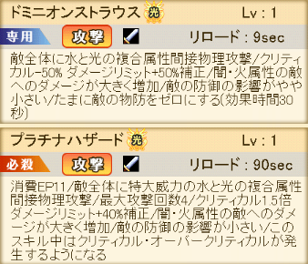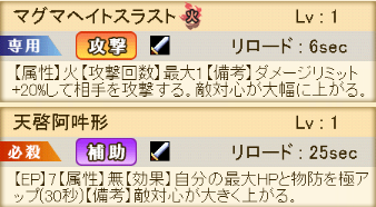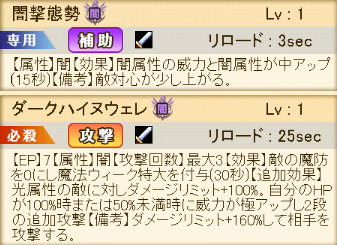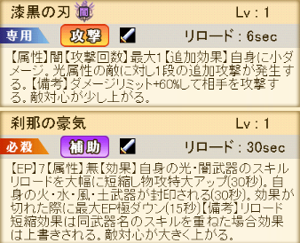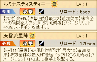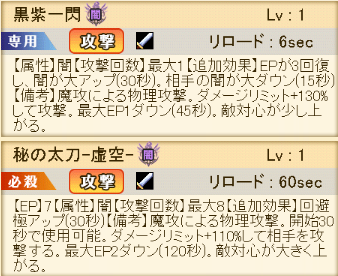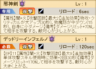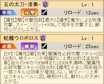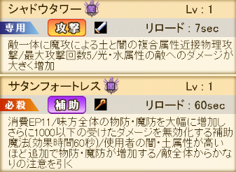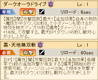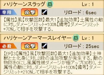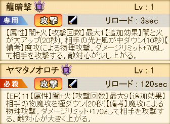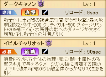 | 騎装 | ガーディアン(得意装備) ウォリアー ルーク ナイト(不得意装備) |