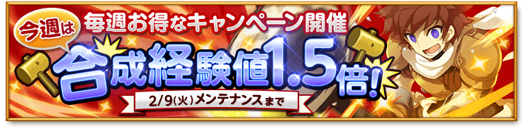 期間中、「高級/至高/究極」の装備品を素材に使用して強化合成を行うと、通常の1.5倍経験値が得られます。