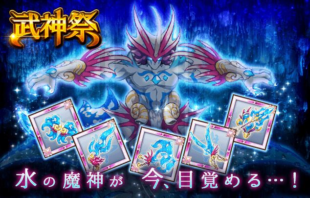 新武器「ポセイドンの魔神器」をはじめ、水属性の装備が必ず手に入る「武神祭 ポセイドンガチャ」を販売します。