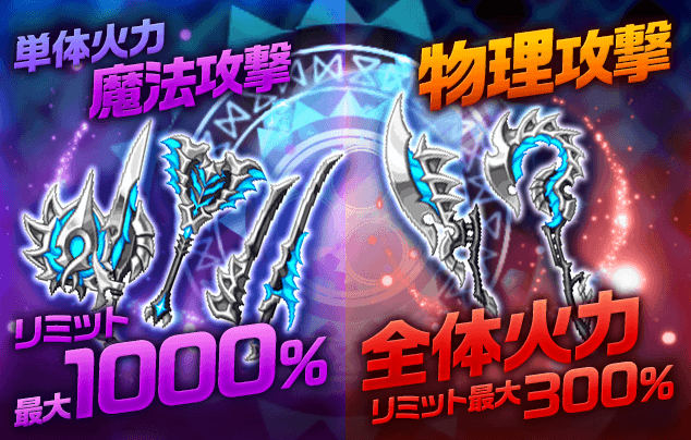 ●最大リミット1000%の単体魔法攻撃(聖剣/天錘/妖刀)