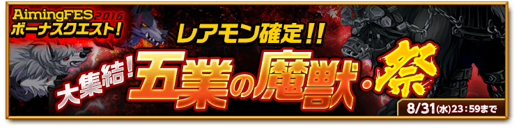 【イベント】AimingFES2016ボーナスクエスト「大集結!五業の魔獣・祭」開催