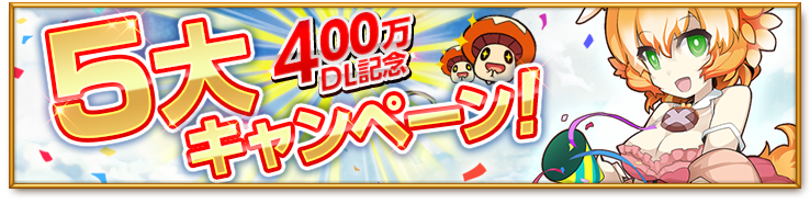 400万ダウンロード突破を記念して5つの豪華キャンペーンを実施します。