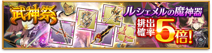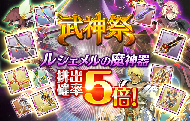 武神祭限定武器「ルシェメルの魔神器」の排出確率が通常の武神祭に比べて5倍に増加!
