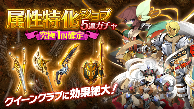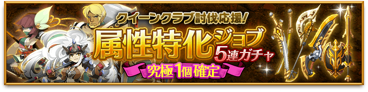 クイーンクラブ討伐応援「土属性特化ジョブ5連ガチャ」販売