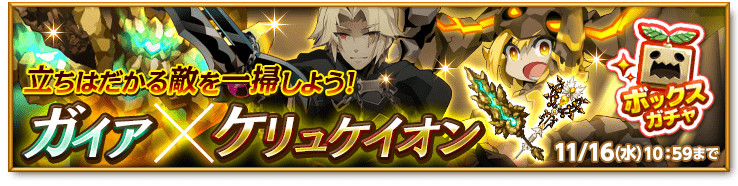 土属性の最上位魔剣「ガイアヴァリス」や「ケリュケイオン」が手に入る「ガイア×ケリュケイオンボックスガチャ」を販売します。