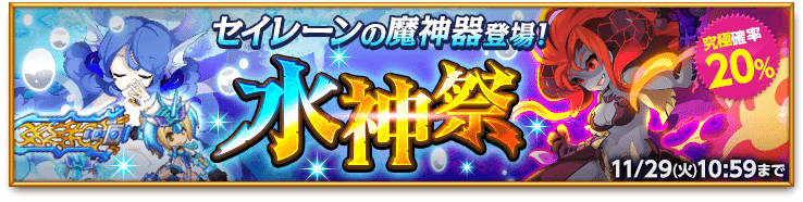 水女神セイレーンの力を秘めた「セイレーンの魔神器」が手に入る「水神祭ガチャ」を販売します。