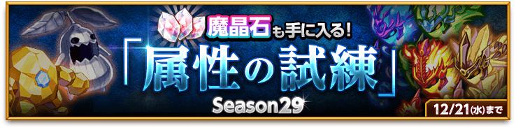 「属性の試練season29」は予定を早め12/14(水)12:59に終了いたします。
