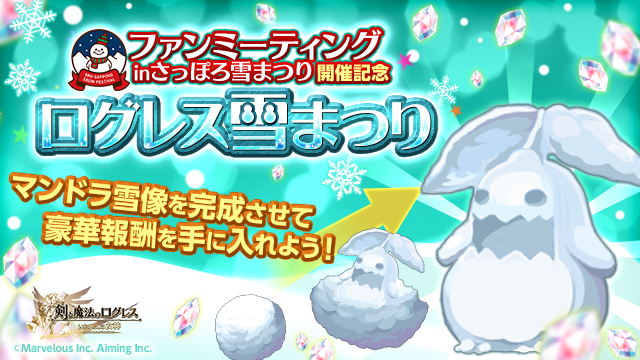 「ファンミーティング 全国キャラバン2017 in さっぽろ雪まつり」の会場に登場する「マンドラ雪像」をゲーム内でも作り、報酬を手に入れよう!