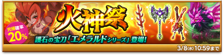 護石の宝刀「エメラルドシリーズ」登場!「火神祭ガチャ」販売