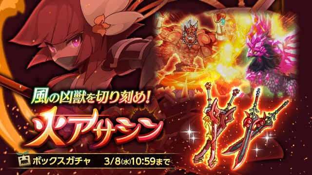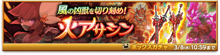 風の凶獣を切り刻め!「火アサシンボックスガチャ」販売