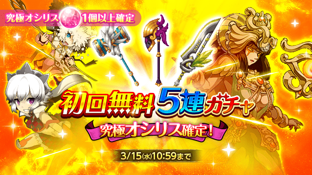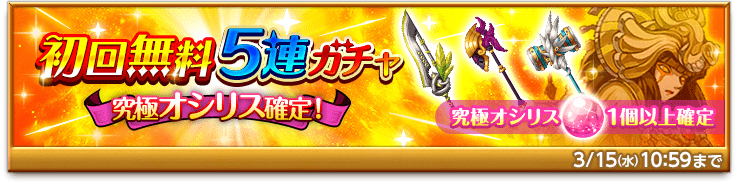 究極オシリス確定!「初回無料5連ガチャ」販売