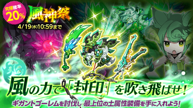イベント「破壊の叙情詩 ギガントゴーレム リニューアル」の攻略応援として「風神祭ガチャ」を販売します。