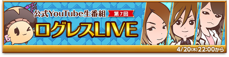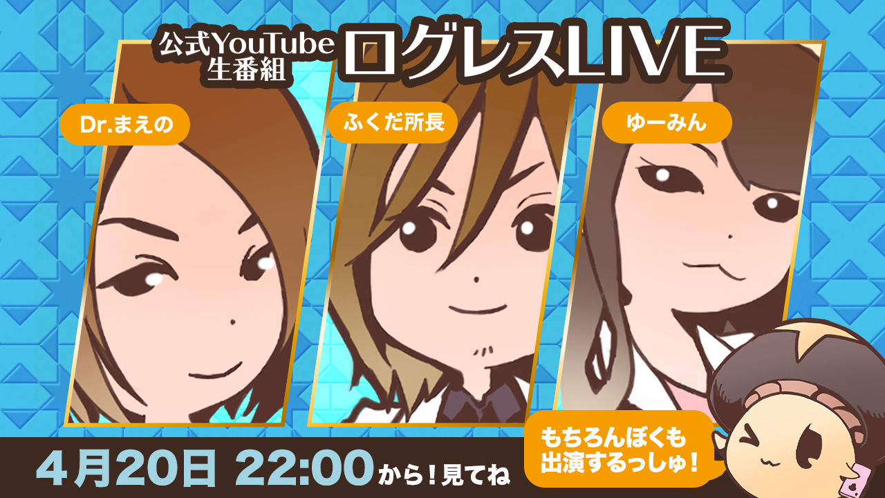 ログレス公式ガイド「ましゅーくん」と運営スタッフが、攻略情報などをお届けするLIVE番組『ログレスLIVE』を放送します。