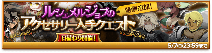 ※本イベント開催に伴い、「ルシェメルジョブのアクセサリー入手クエスト」の配信スケジュールを一部変更しました。