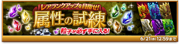 各属性の「レアランクアップ素材」や「進化素材」が手に入ります。