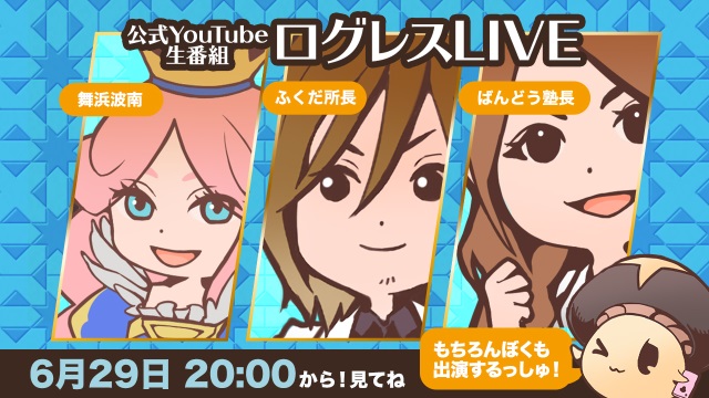 ログレス公式ガイド「ましゅーくん」と運営スタッフが、攻略情報などをお届けするLIVE番組『ログレスLIVE』を放送します。