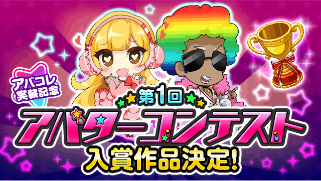 アバターコレクション実装を記念し、2017/7/19(水)メンテナンス後~8/2(水)23:59まで開催していた「第1回 アバターコンテスト」の入賞9作品がついに決定!