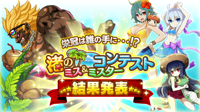 2017/8/3(木)メンテナンス後~8/8(火)23:59まで開催していた「渚のミス&ミスターコンテスト」にて、ついに人気No.1の水着キャラが決定しました!