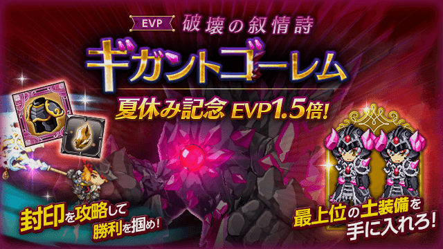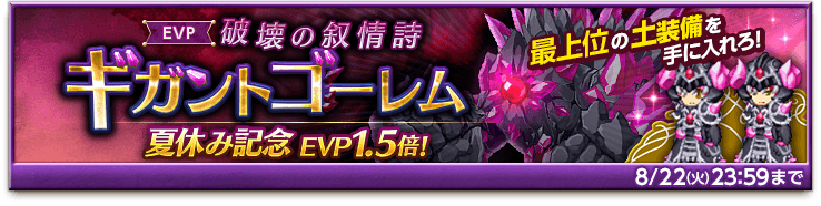 【8/29更新】【夏休み記念EVP1.5倍】最上位の土装備を手に入れろ!「破壊の叙情詩 ギガントゴーレム」開催