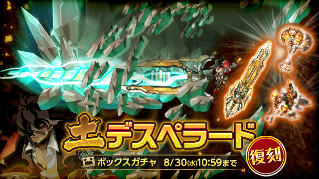 「セイレーンゲーム」開催を記念して、「土デスペラード」におすすめの強力な武器が手に入る「土デスペラードボックスガチャ」を販売します。