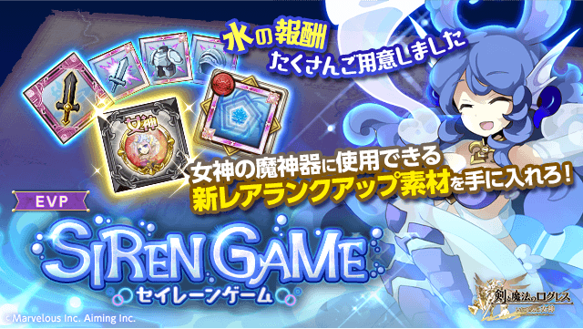 期間中、「ログレス」タブのスペシャルクエストにて「セイレーンゲーム」、時限クエストにて「セイレーンゲームEX」を配信します。