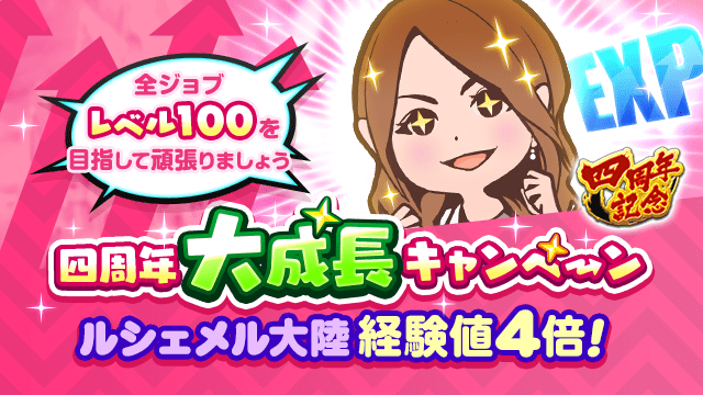 ルシェメル大陸 経験値4倍!「四周年大成長キャンペーン」