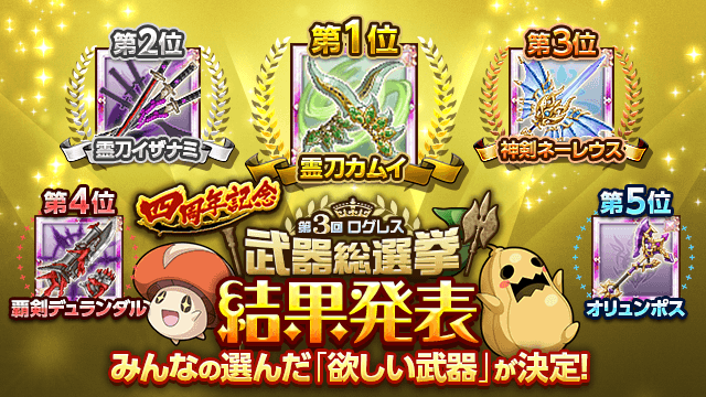 【12/21(木)追記】みんなの選んだ『欲しい武器』が決定!「第3回ログレス武器総選挙」結果発表!