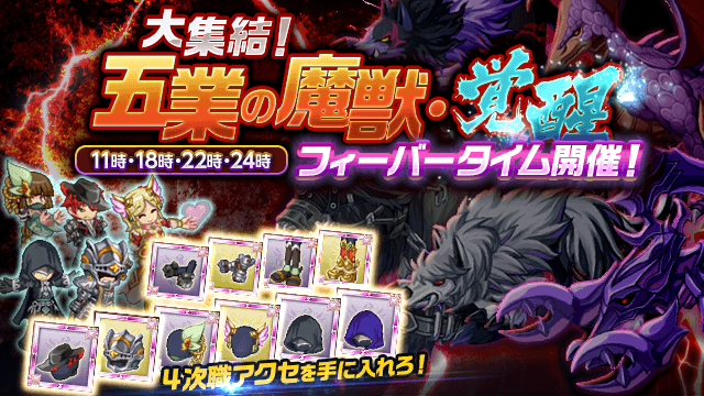 また、「大集結!五業の魔獣・覚醒 フィーバータイム」では、4次職アクセサリーをドロップするエネミー5体が同時に登場!
