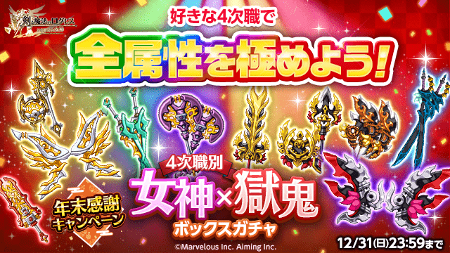 ●好きな4次職で全属性を極めよう!4次職別「女神×獄鬼ボックスガチャ」