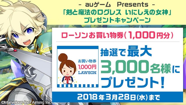 期間中、抽選で最大3,000名様に「ローソンお買物券1,000円分」がその場で当たる「【auゲーム企画】プレゼントキャンペーン」を開催!