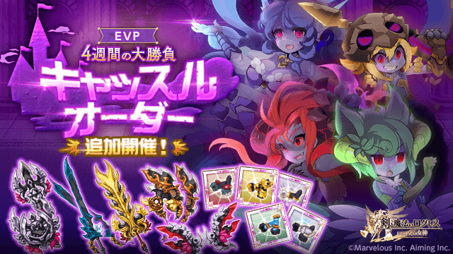 期間中、「ログレス」タブのスペシャルクエストにて4属性の「キャッスルオーダー」を追加開催します。