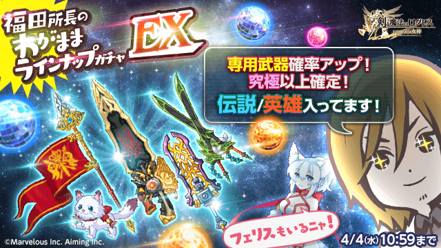 期間中、ガチャの「オススメ」タブにて「福田所長のわがままラインナップガチャ EX」を販売します。