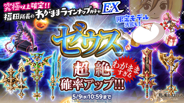 ●わがまますぎる!?ゼウス確率超絶アップ!「福田所長のわがままラインナップガチャ EX」