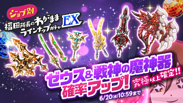 多段わがまま発動!ゼウス&戦神確率アップ!「福田所長のわがままラインナップガチャ EX」