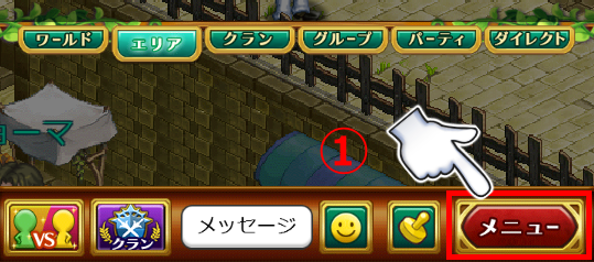 ▲①画面右下の「メニュー」をタップ!