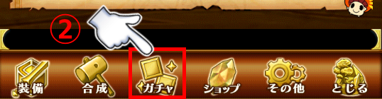 ▲②画面下部の「ガチャ」をタップ!