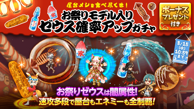 屋台メシを食べ尽くせ!「お祭りモデル入りゼウス確率アップガチャ」