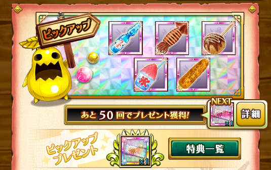 該当のガチャを利用すると、その利用回数に応じてプレゼントがもらえる機能です。