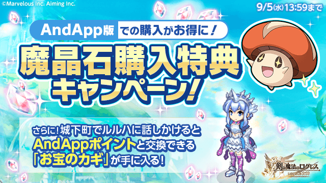 【AndApp版】今だけ「魔晶石」購入がお得に!「AndApp版 魔晶石購入特典キャンペーン」【8/29(水)19:03更新】