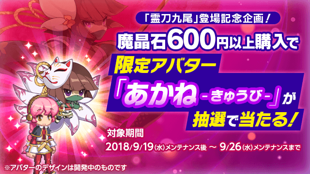 「霊刀九尾」登場記念!いま魔晶石を購入すると、抽選で限定アバターが当たる!