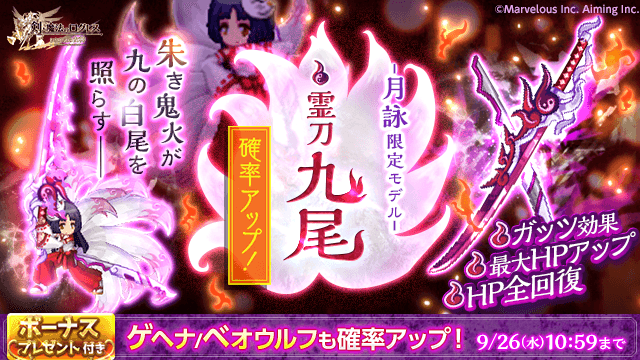 朱き鬼火が九の白尾を照らす――月詠限定モデル「霊刀九尾確率アップガチャ」