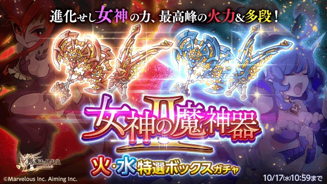 最高峰の火力&多段!「女神の魔神器Ⅱ火・水特選ボックスガチャ」