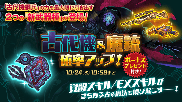 「古代機鋼兵」の力を引き出す2つの新武器種が登場!ボーナス付き★「古代機&魔銃確率アップガチャ」【10/22(月)更新】