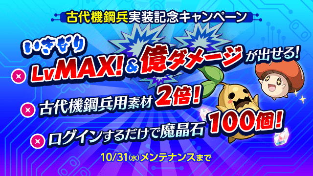 ●魔晶石100個や素材2倍など盛りだくさん!「古代機鋼兵実装記念キャンペーン」