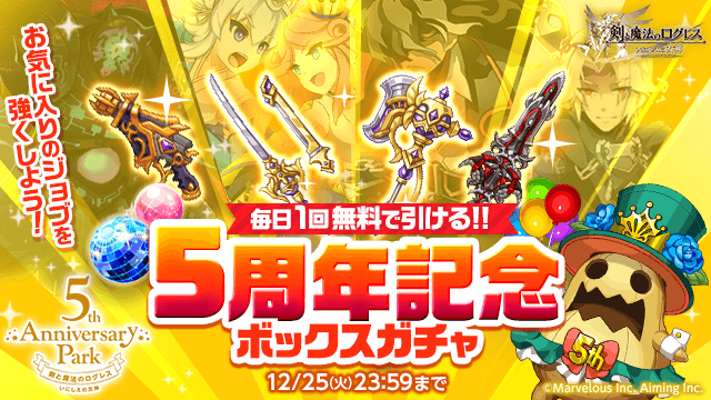 毎日1回無料で引ける!!「5周年記念ボックスガチャ」