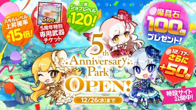 他にもスキルレベル上昇確率最大15倍などのキャンペーンを複数開催!有効活用して5周年記念イベントを最大限楽しもう!